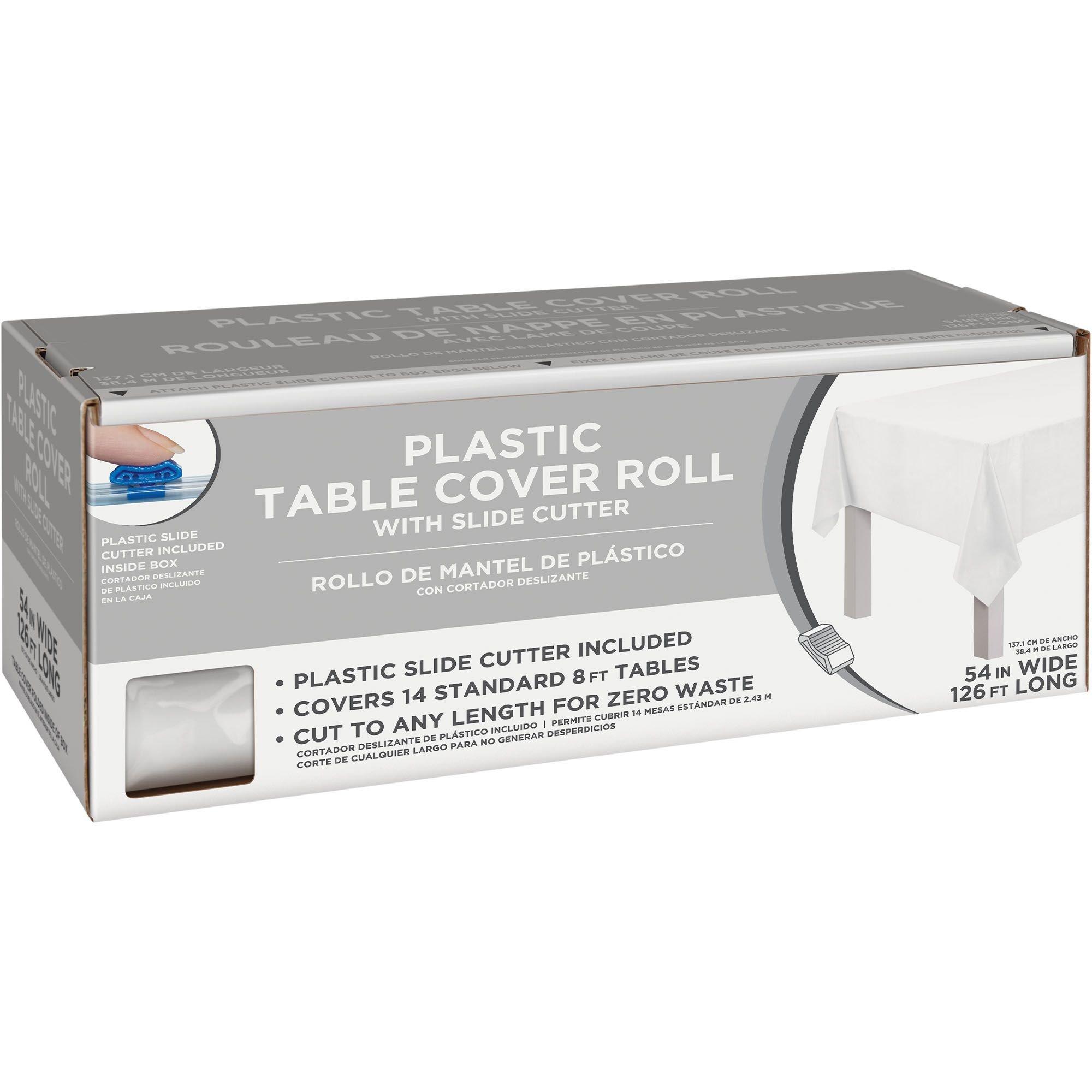 White Plastic Table Cover Roll with Slide Cutter, 54in x 126ft Party City